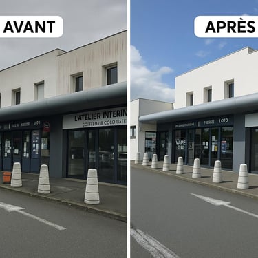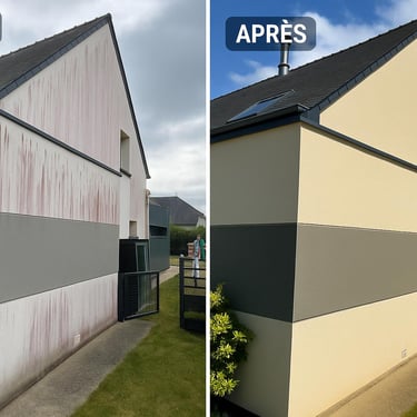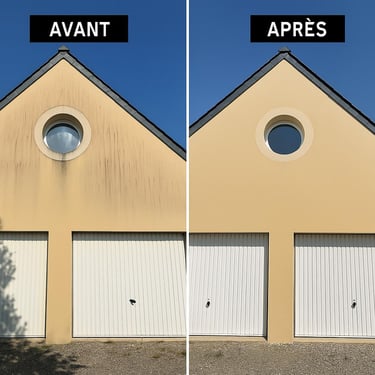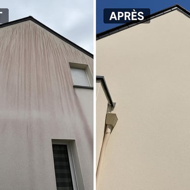 L'équipe met en place la zone de travail et procède au nettoyage (démoussage à basse pression, lavage de façade), suivi des traitements (fongicide, hydrofuge) selon les besoins, en veillant à la protection de vos extérieurs.