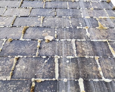 Remplacement des ardoises cassées : Les ardoises endommagées ou fissurées sont remplacées selon les règles de l'art par un artisan couvreur.